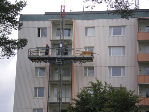 Bilder från inglasningen av balkongerna hösten 2008.